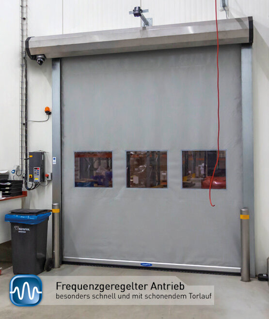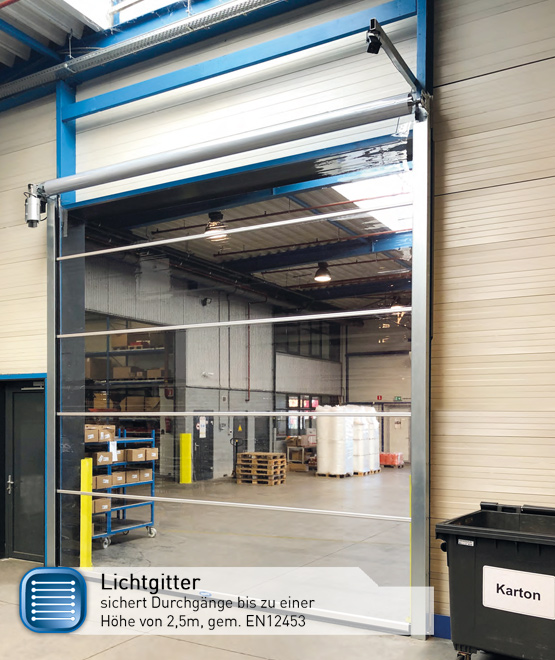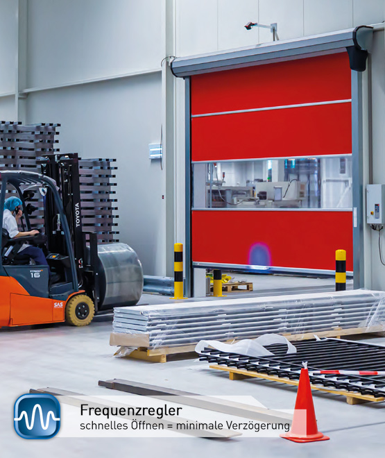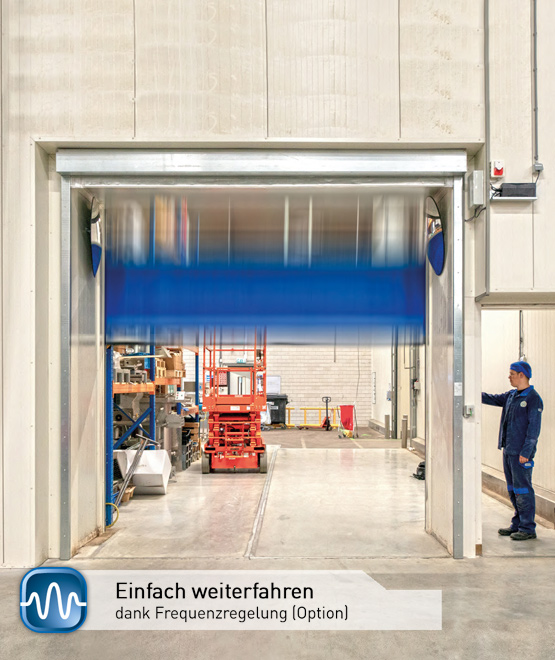Durch das schnelle Öffnen und Schließen wird, ohne den Verkehr zu behindern, sichergestellt, dass Zugluft keine Chance hat.