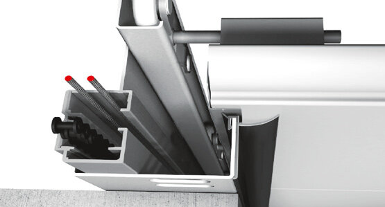 Novoferm hat sich in den Bereichen Wärmedämmung, Geräuschreduktion und Preisgestaltung ehrgeizige Ziele gesteckt. Unsere Forschungs- und Entwicklungsabteilung hat es geschafft ein schnelles Sektionaltor mit guter Wärmedämmung zu entwickeln – das NovoSpeed Thermo. Speziell entwickelte Rollen begrenzen Laufgeräusche auf ein Minimum. Dieses patentierte System ermöglicht auch das einzigartig schlanke Design des NovoSpeed Thermo.