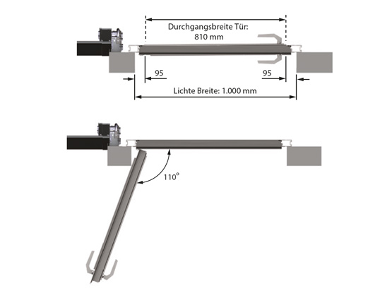 In ein Novoferm NovoLux oder Thermo Tor kann eine Schlupftür integriert werden, welche unter bestimmten Voraussetzungen sogar als Fluchtweg zugelassen werden kann.