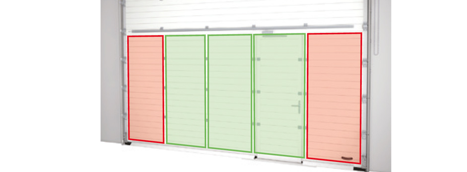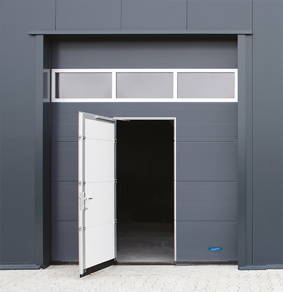 Aus Unfallschutzgründen kann es von Vorteil sein den Durchgang von Menschen und Gütern getrennt zu halten. Dies ist mit einer festen Durchgangstür in der Gebäudefront, unabhängig vom Sektionaltor oder einer Nebentür in Toroptik, unmittelbar neben dem Sektionaltor möglich.