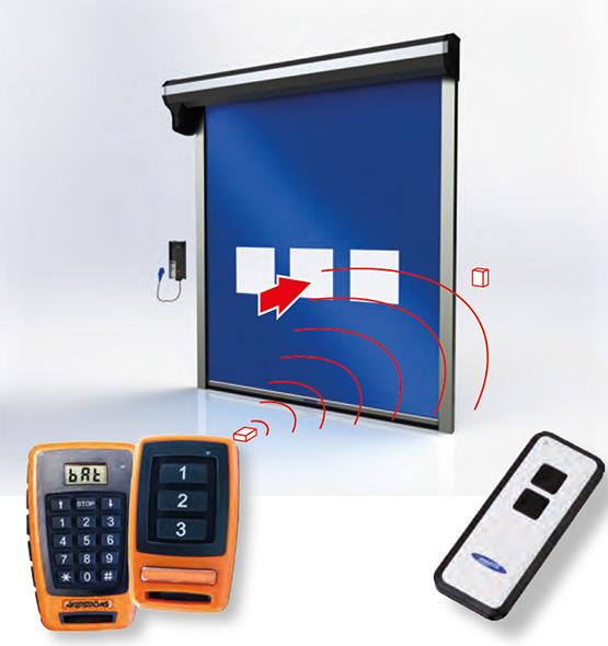 An die Novoferm-Steuerungen können alle gängigen Betätigungskomponenten angeschlossen werden. Eine kleine Auswahl der vielen Möglichkeiten zeigen wir Ihnen hier. Die SpeedRoller-Steuerungen bieten je nach Version zahlreiche unterschiedliche Programmiermöglichkeiten. So können zum Beispiel die Laufgeschwindigkeit, die Öffnungszeit, der Stopp auf halber Höhe usw. ganz nach Wunsch eingestellt werden.